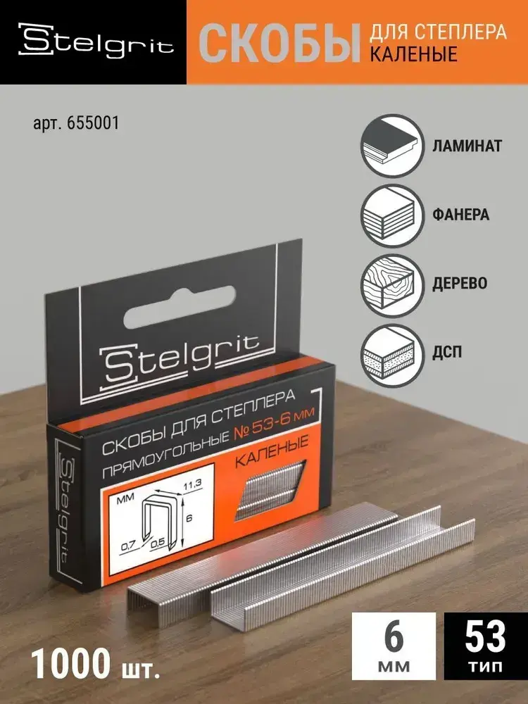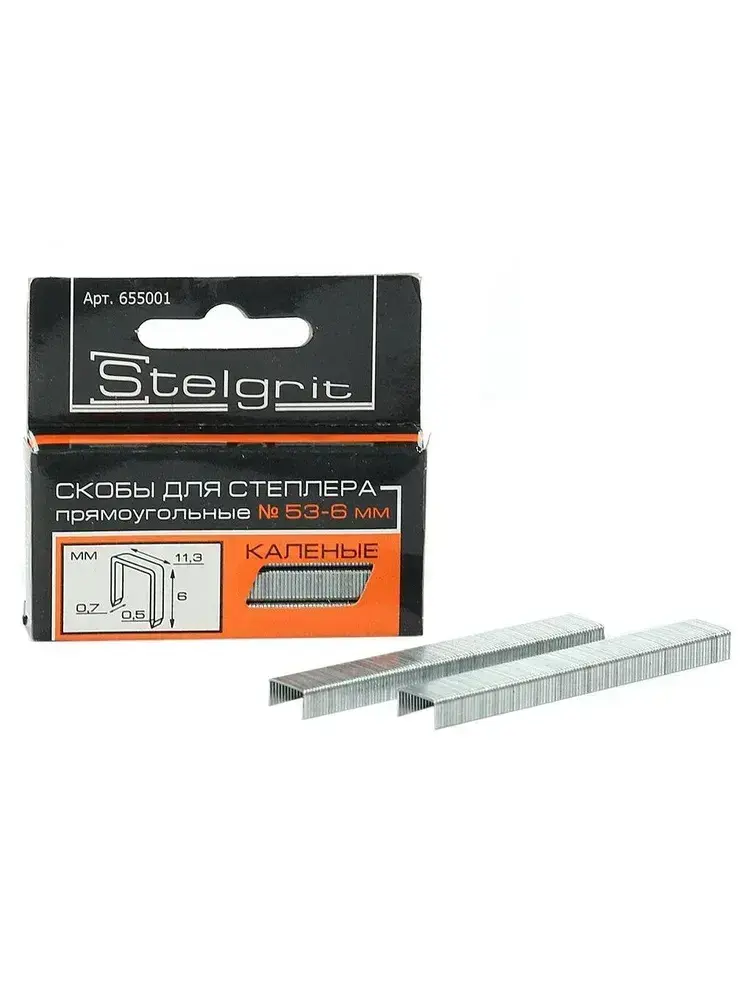 Скобы Тип 53 для строительного/мебельного степлера каленые 6x0,7x11,3 мм 1000 шт Stelgrit
