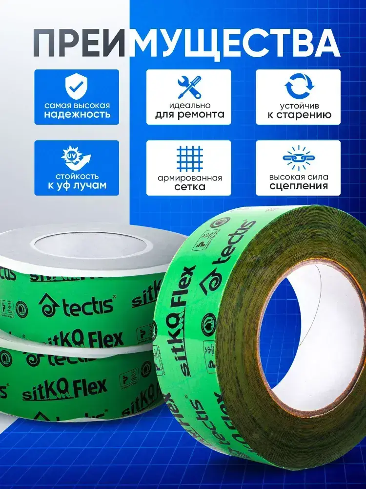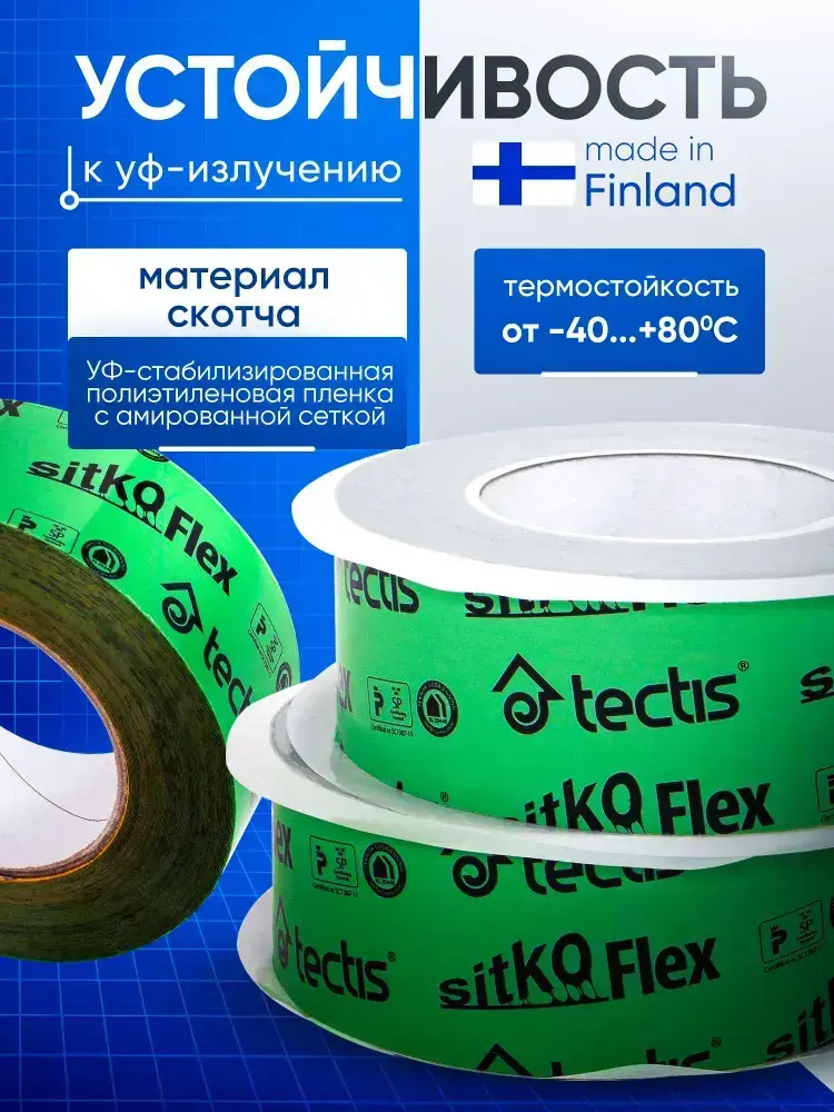 Скотч для пароизоляции и мембран строительный Tectis Sitko Flex Тектис Ситко Флекс 50мм х 25м Финляндия