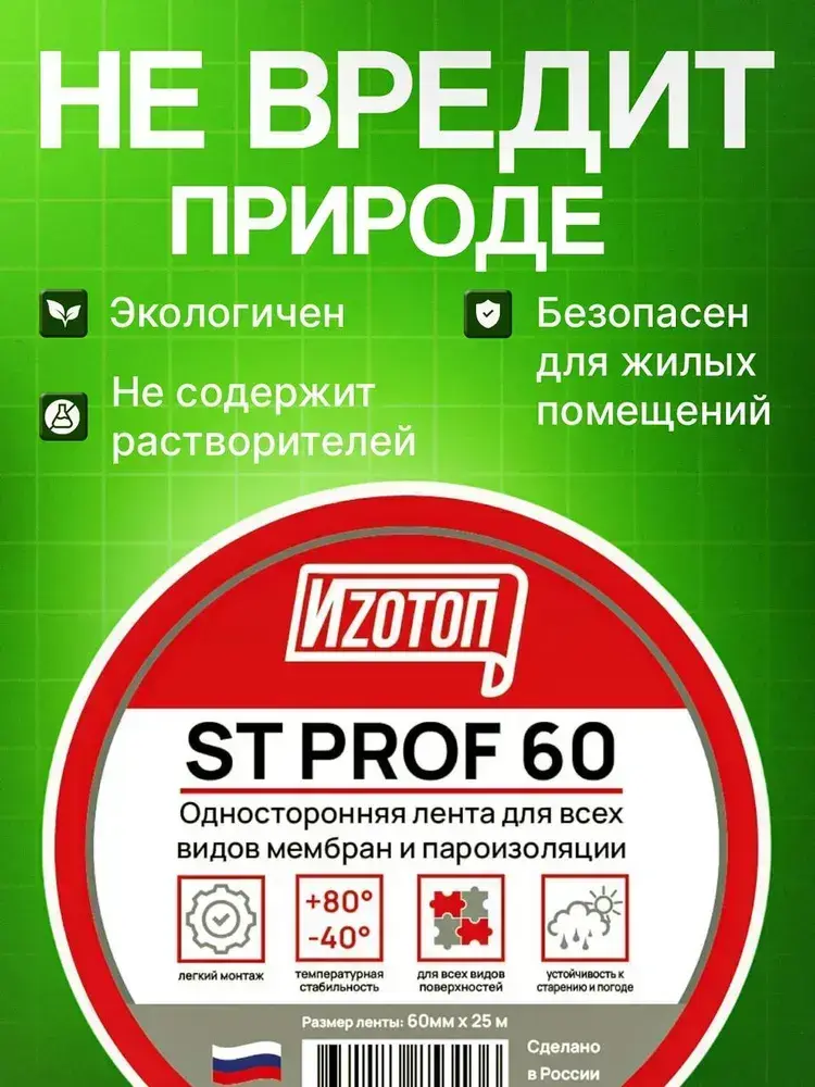 Скотч для пароизоляции Изотоп ST PROF 60мм*25м, скотч для гидроизоляции, дельта, ситко флекс, евровент