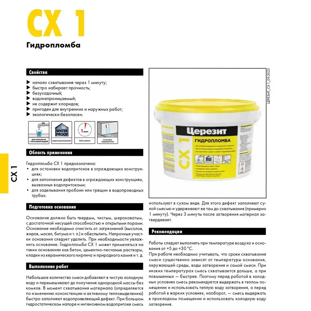Смесь гидроизоляционная цементная ЦЕРЕЗИТ CX 1 2 кг