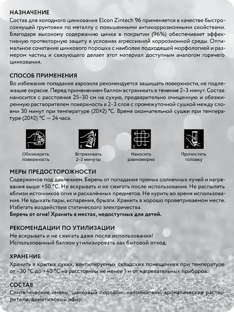 Состав для холодного цинкования цинковая грунтовка грунтовка по металлу Elcon Zintech 96, аэрозоль 520 мл