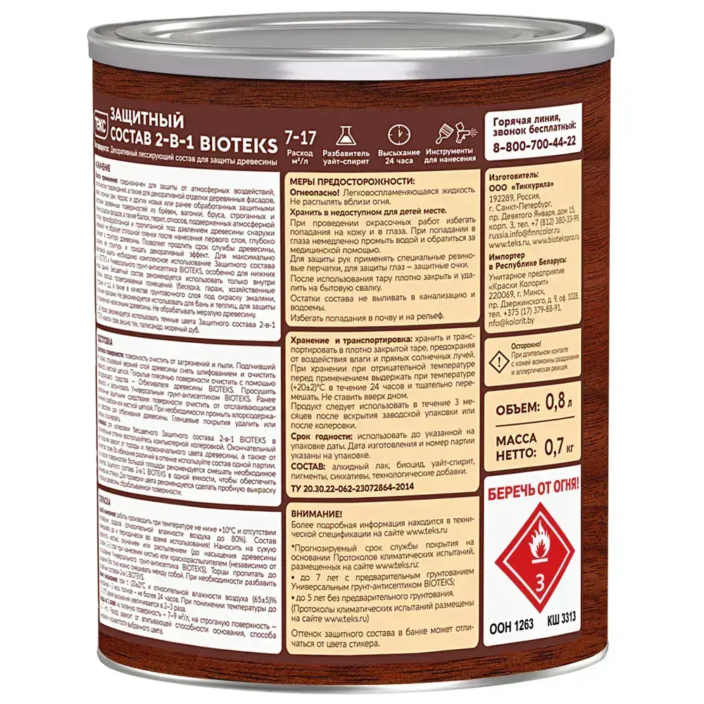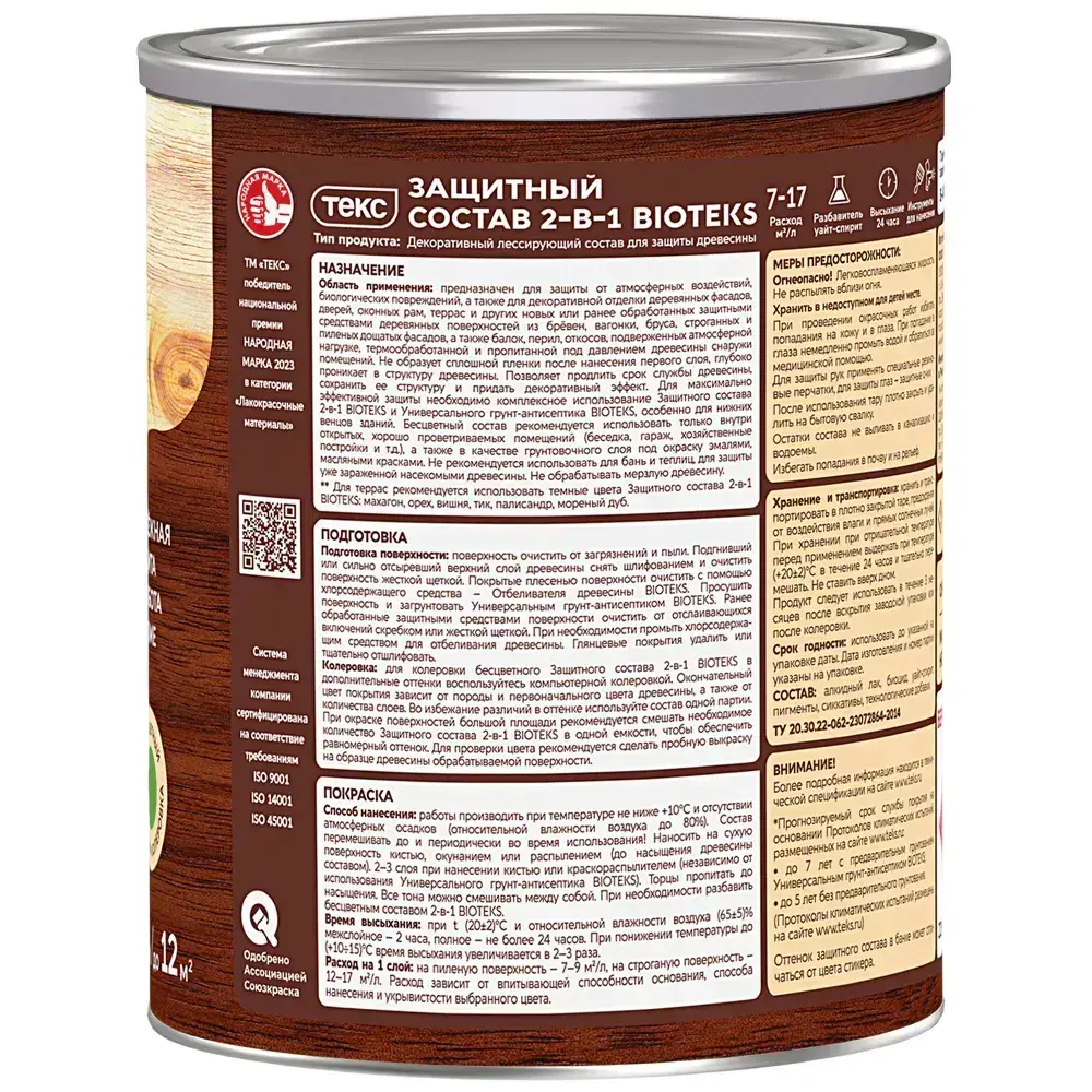 Состав защитный 2-в-1 БИОТЕКС (BIOTEKS) палисандр 0,8л
