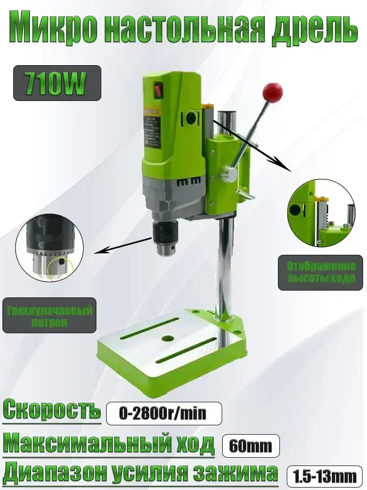 Станок сверлильный BG-5156E 0-2800 об/мин, 710 Вт, плавная регулировка оборотов, трехкулачковый патрон, электрическая стационарная дрель, инструменты для ремонта и строительства, электро инструмент.