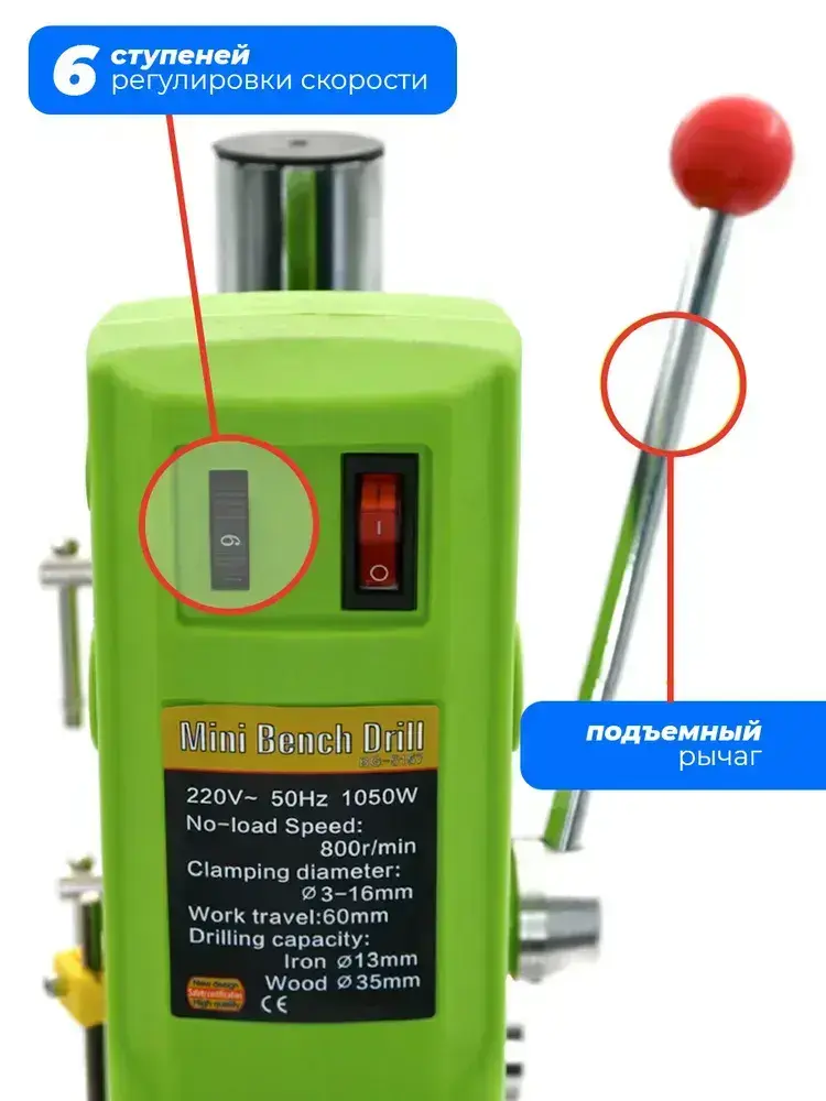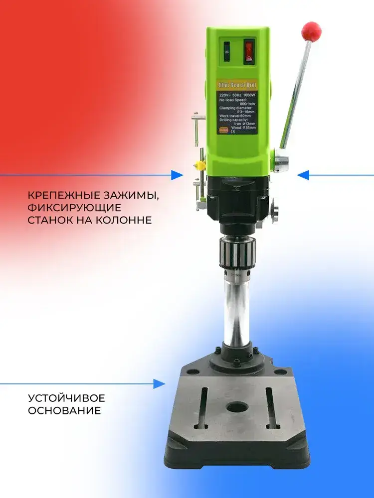 Станок сверлильный настольный BG-5157 для широкого спектра материалов, 0-800 об/мин, 1050 Вт, плавная регулировка оборотов, трехкулачковый патрон, стационарная дрель