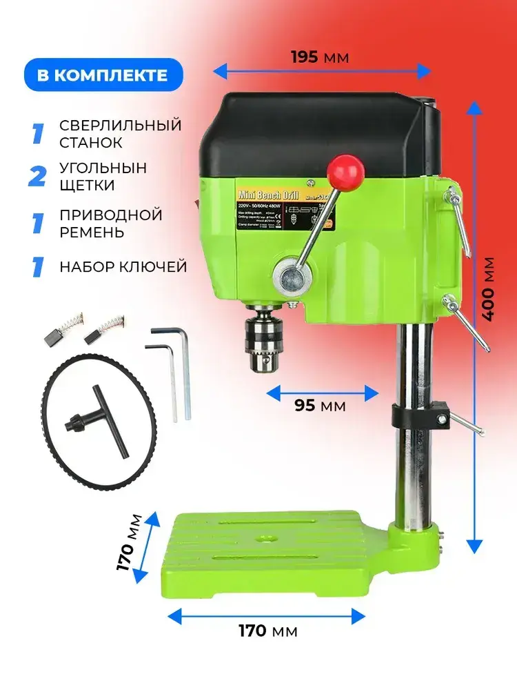 Станок сверлильный настольный BG-5166A для широкого спектра материалов, 0-6000/11000 об/мин, 480 Вт, плавная регулировка оборотов, стационарная дрель
