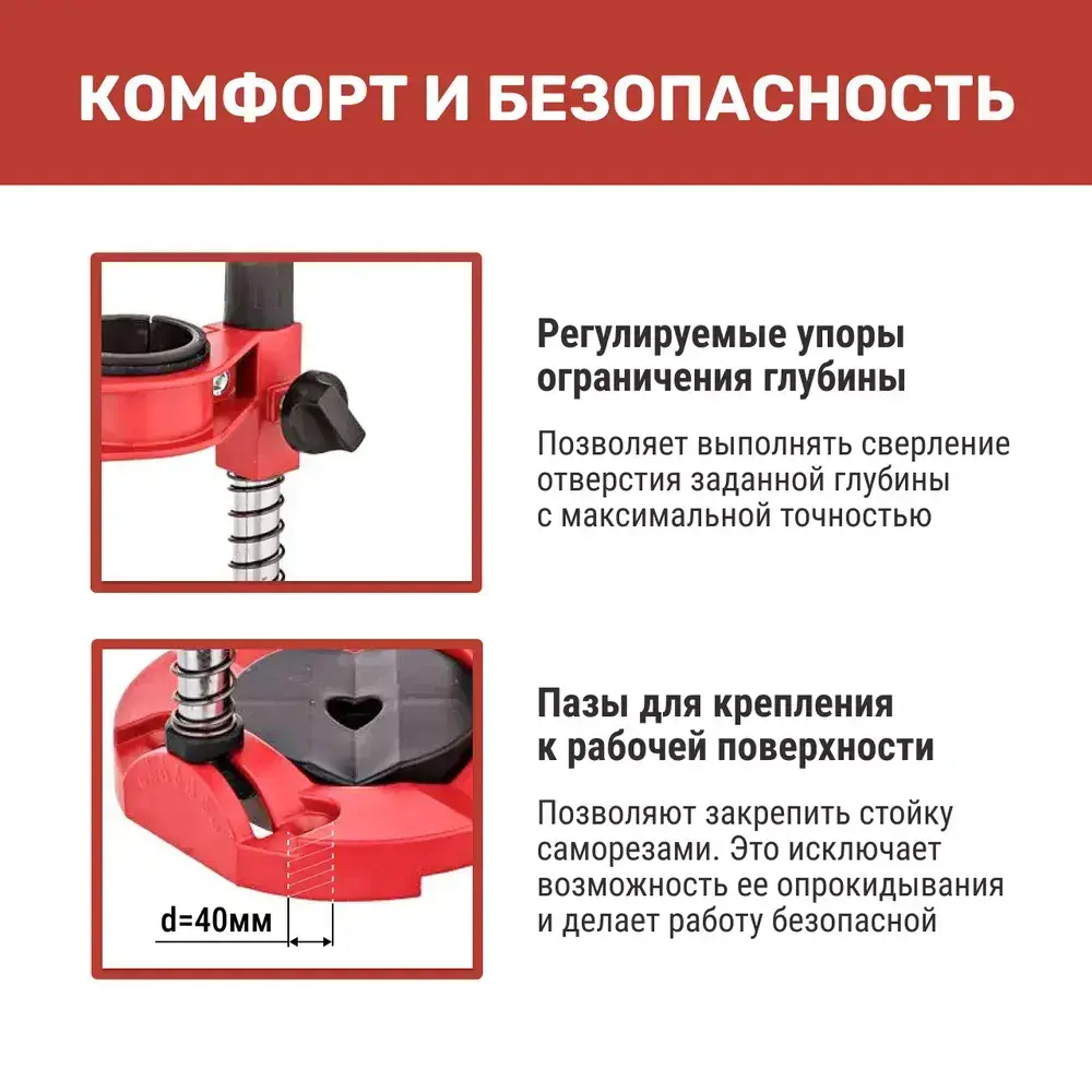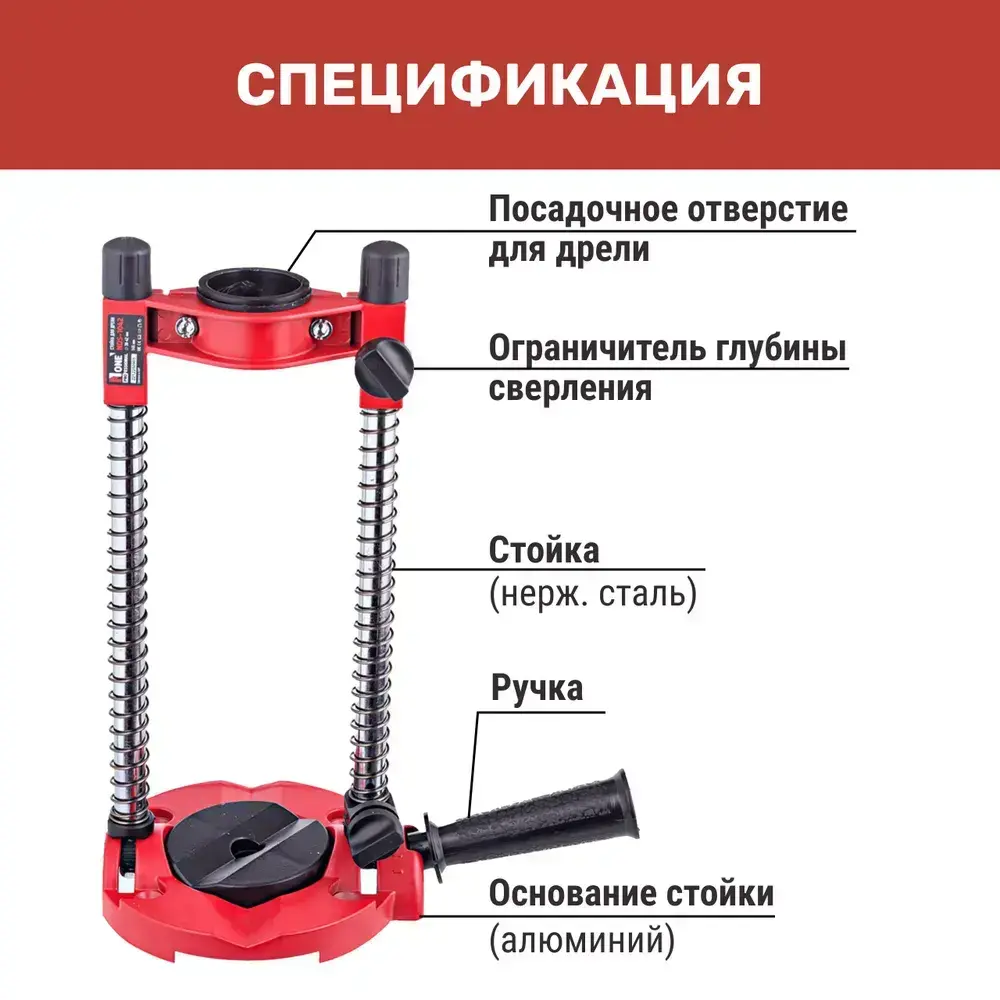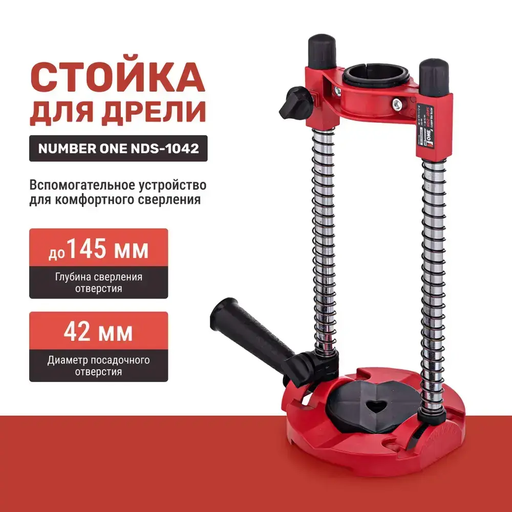 Стойка для дрели NUMBER ONE NDS-1042, диаметр 38-42 мм, глубина 145мм, ограничитель, алюминивое основание