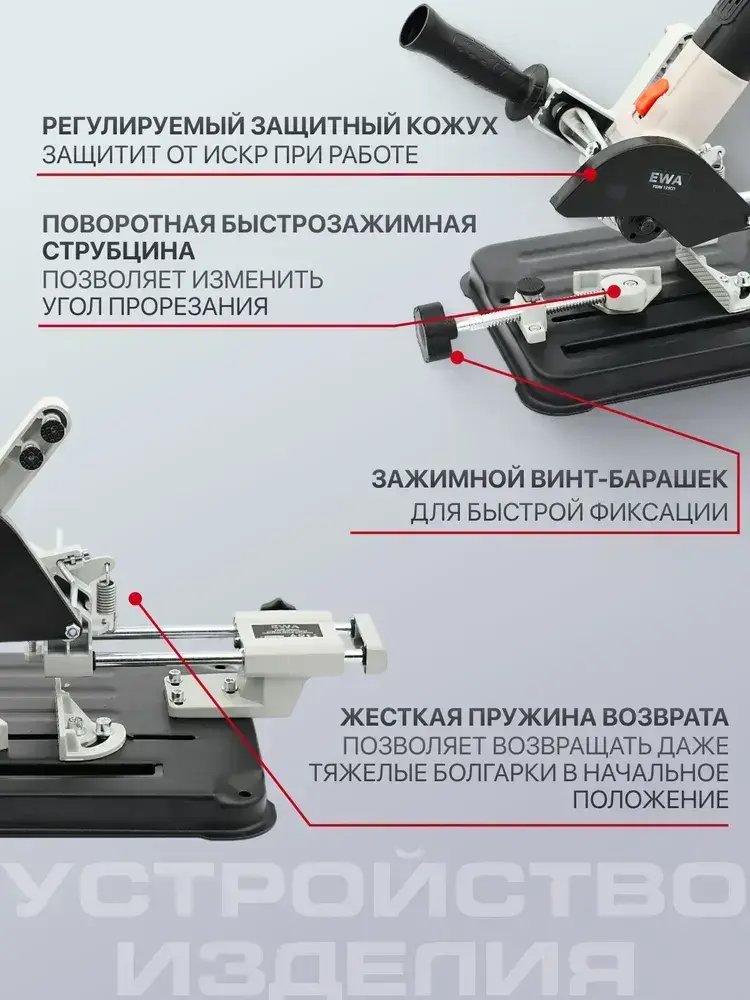 Стойка для УШМ, EWA 125 СП, диск 115/125 мм, протяжной механизм 150 мм / стойка для болгарки