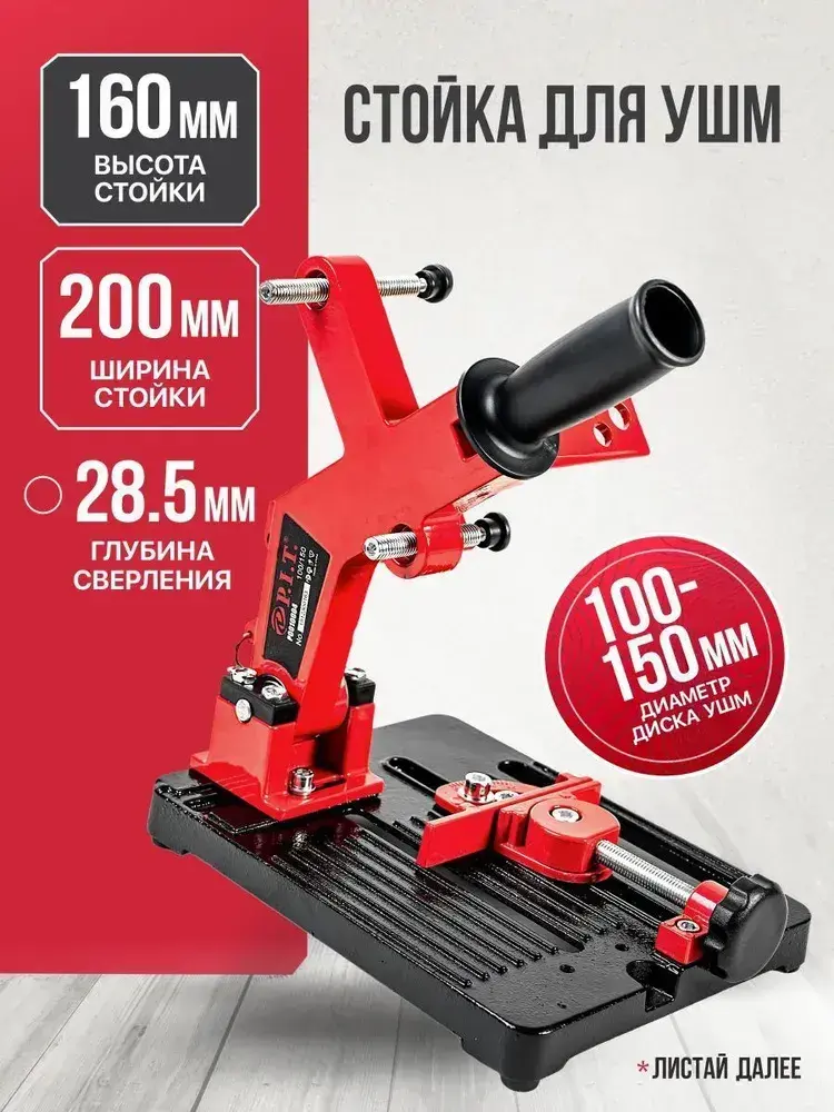 Стойка для УШМ P.I.T. P0010004, круг 100-150мм, угловые тиски 45 град, литое основание