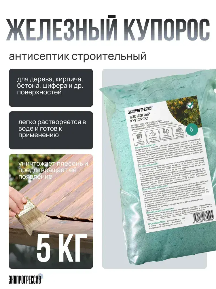 Строительный антисептик 5кг, Железный купорос средство от плесени