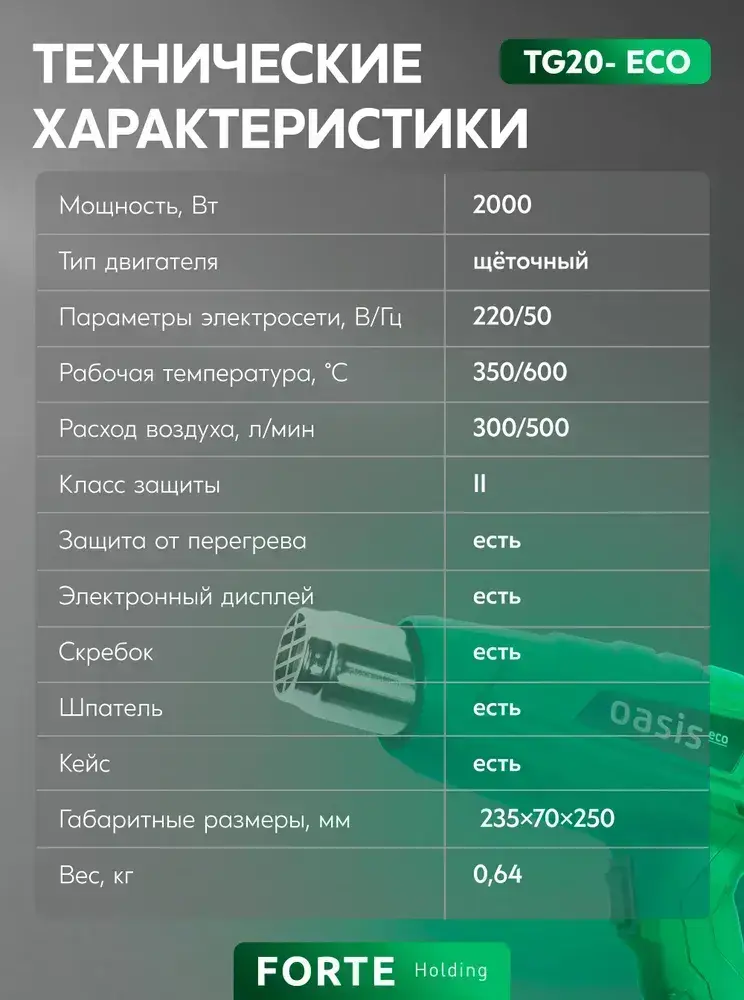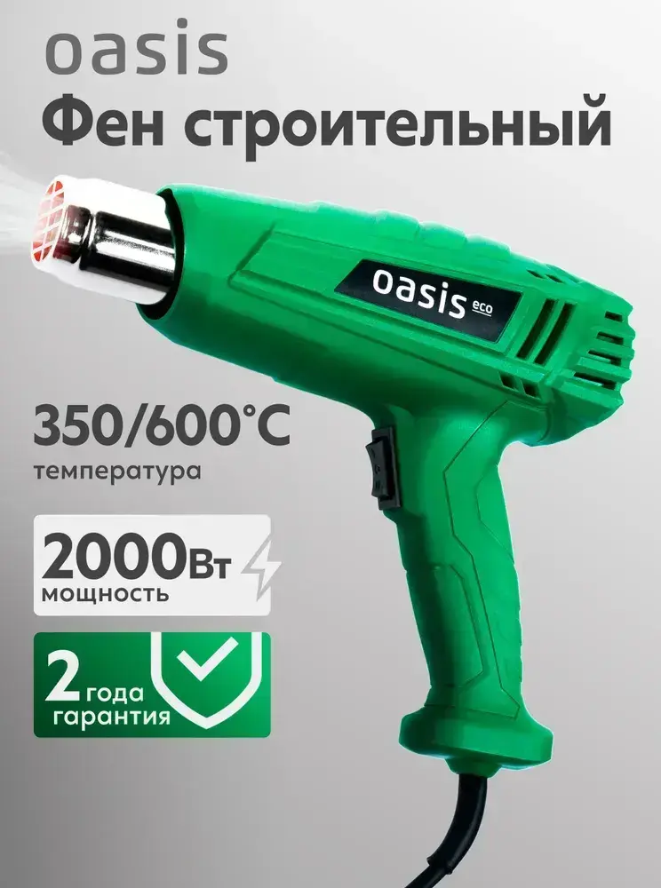 Строительный фен с регулировкой температуры Oasis Eco TG-20 Eco, 2000 Вт / фен для термоусадки