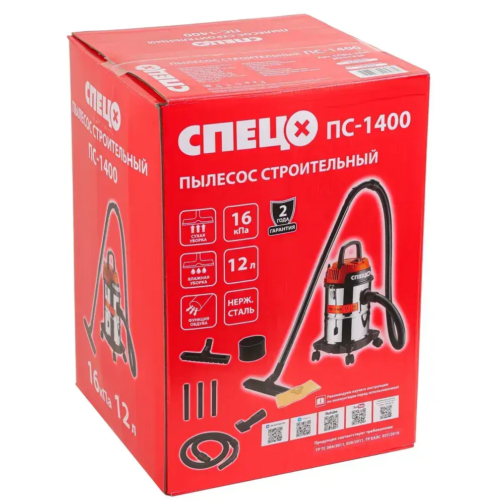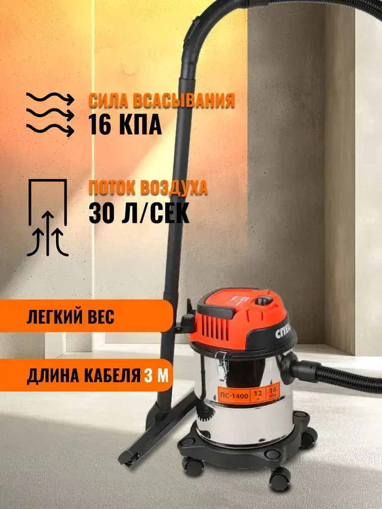 Строительный пылесос Спец ПС-1400 (1350Вт, 12л; сух/влажная уборка, функция выдува)
