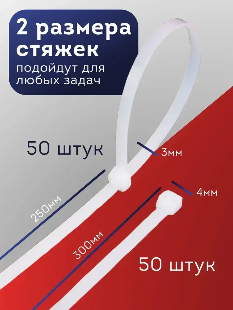 Стяжка кабельная 100 шт. (4х300 мм-50 шт., 3х250 мм-50 шт.)