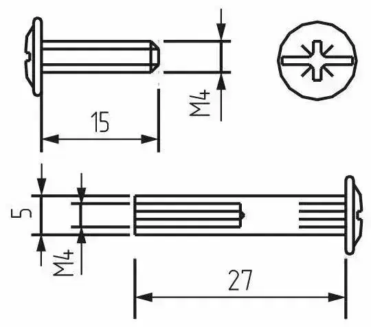 Стяжка мебельная межсекционная, Диаметр 5 мм, М4 , 10 штук, для стягивания боковин мебели общей толщиной от 32 до 40 мм
