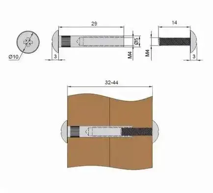 Стяжка мебельная межсекционная, Диаметр 5 мм, М4 , 20 штук, для стягивания боковин мебели общей толщиной от 32 до 40 мм