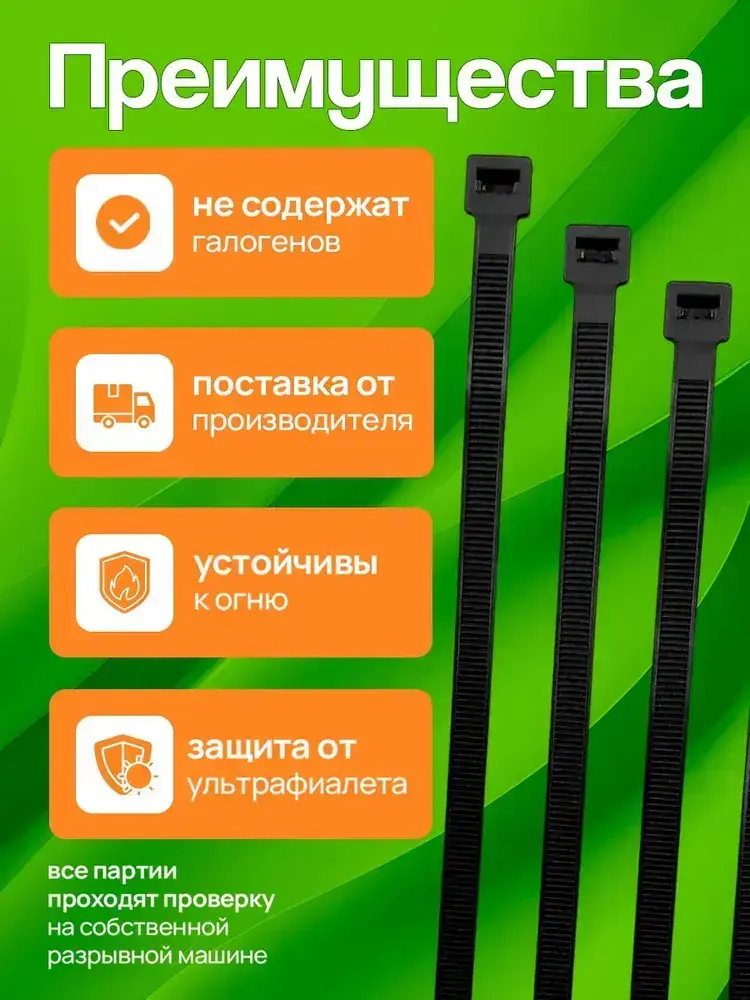 Стяжки пластиковые 2,5*150 мм, хомуты нейлоновые чёрные, 100 штук, кабельные, стяжка для проводов, хомут для монтажа проводки, нагрузка до 8 кг.