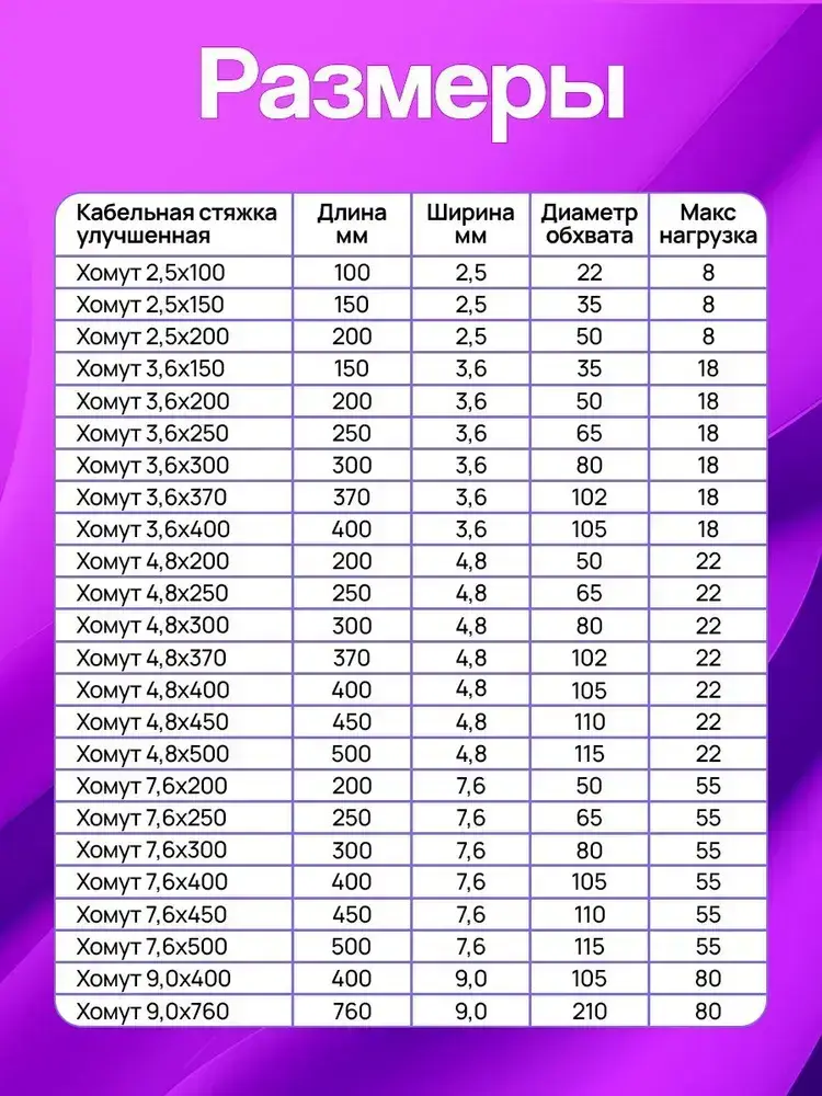 Стяжки пластиковые 7,6*500 мм, хомуты нейлоновые белые, 100 штук, кабельные, стяжка для проводов, хомут для монтажа проводки, нагрузка до 55 кг.