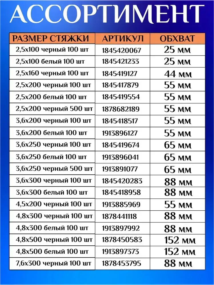 Стяжки пластиковые (хомуты пластиковые) 2,5х100 мм, белые, 100 штук