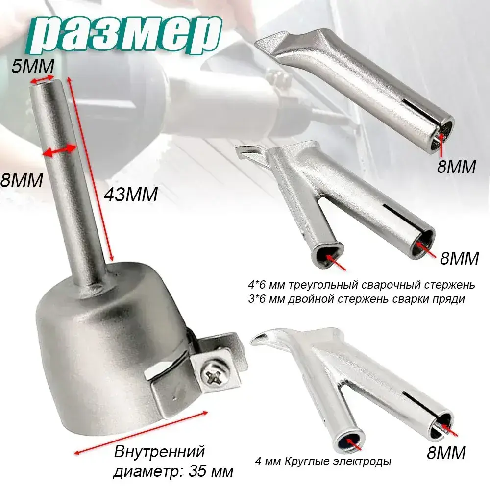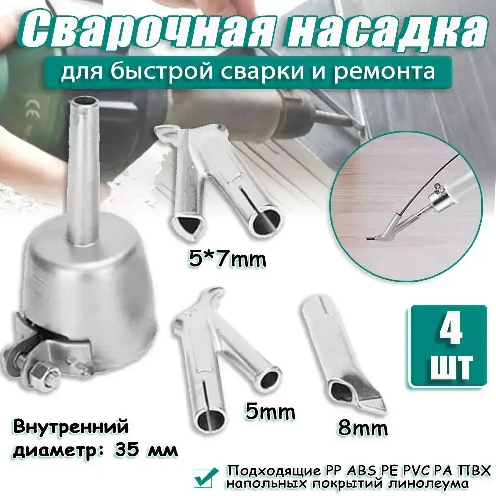 Сварочная насадка (35 /5 /5*7/8mm)на строительный фен для быстрой сварки и ремонта пластика PP ABS PE PVC PA ПВХ напольных покрытий линолеума/ Комплект 4 шт.