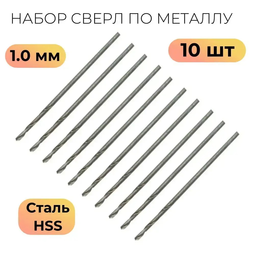 Сверла по металлу HSS быстрорежущая сталь 1,0 мм (10 шт.)