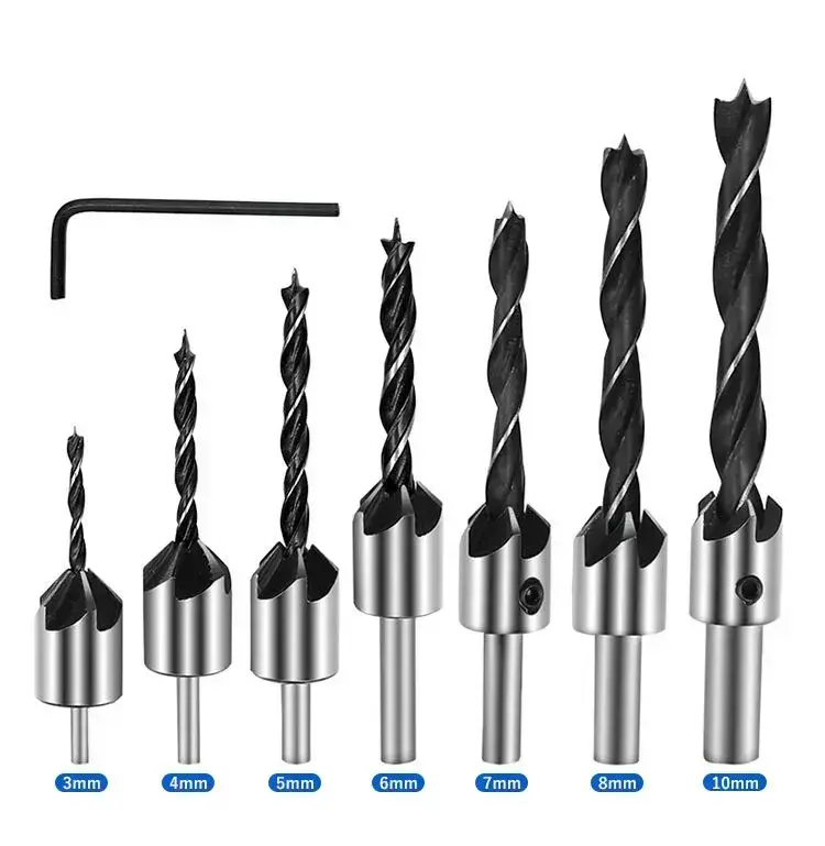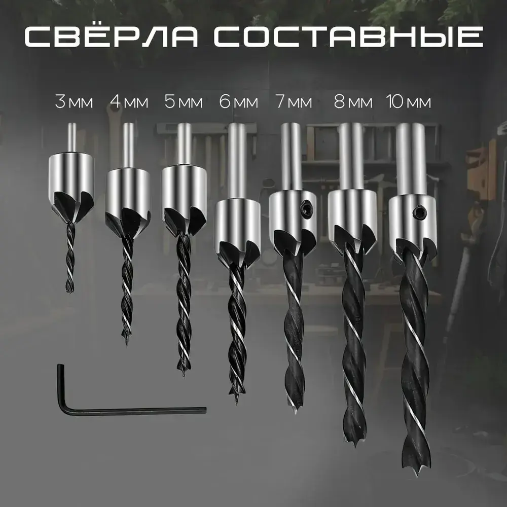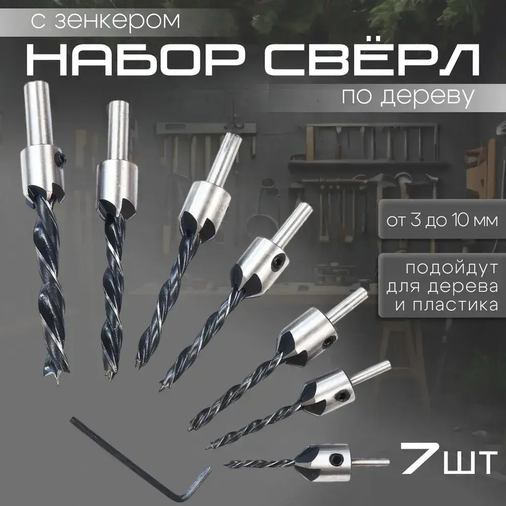 Сверла с зенкером по дереву Набор 7 шт. (3мм, 4мм, 5мм, 6мм, 7мм, 8мм, 10мм)