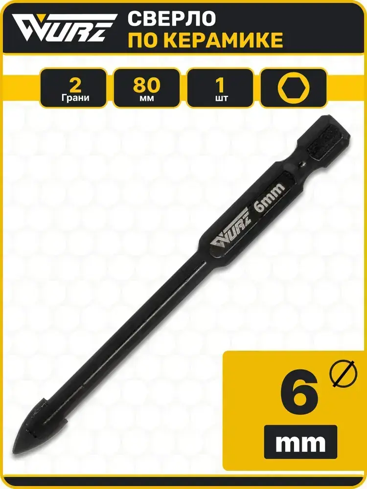 Сверло Duo (2 грани) 6мм, по керамике, керамограниту и стеклу WURZ 9806