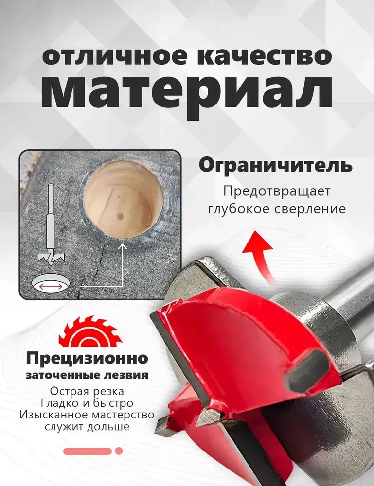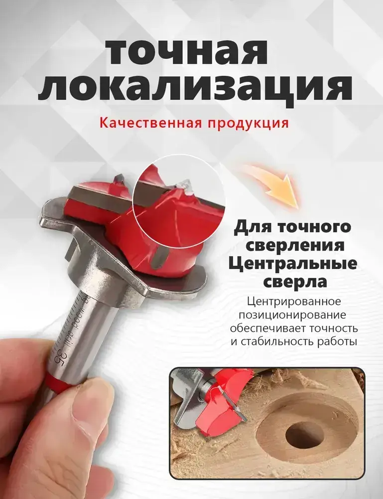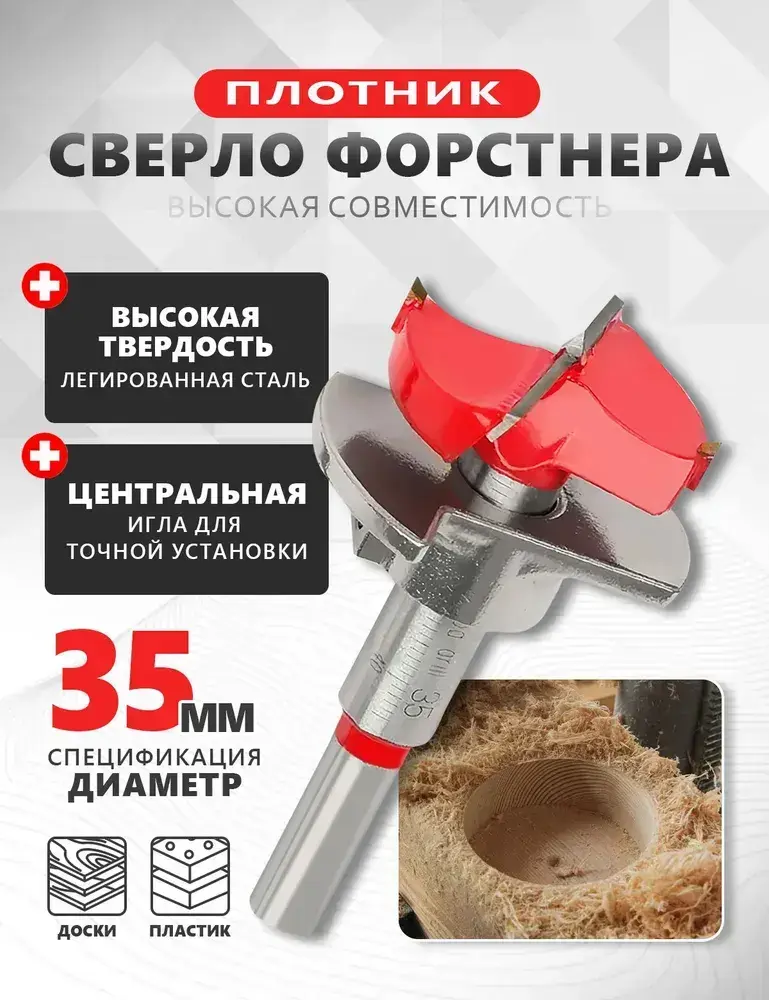 Сверло фреза Форстнера по дереву 35 мм с ограничителем TORGWIN для установки мебельных петель