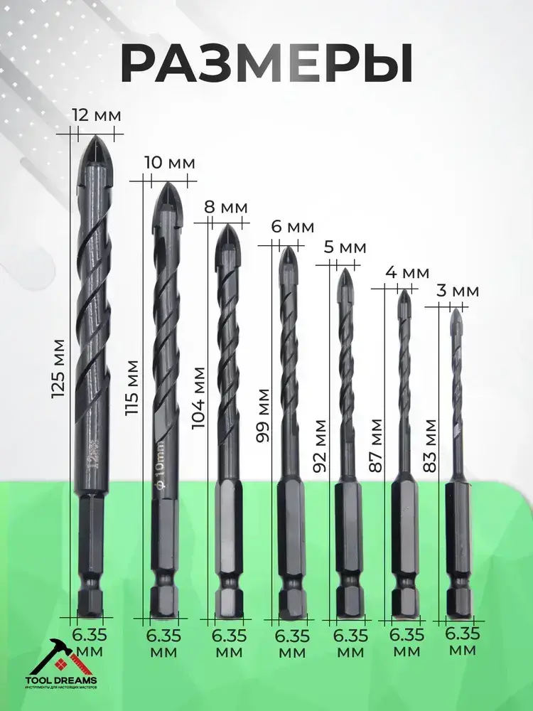 Сверло по бетону, керамике и стеклу 7шт