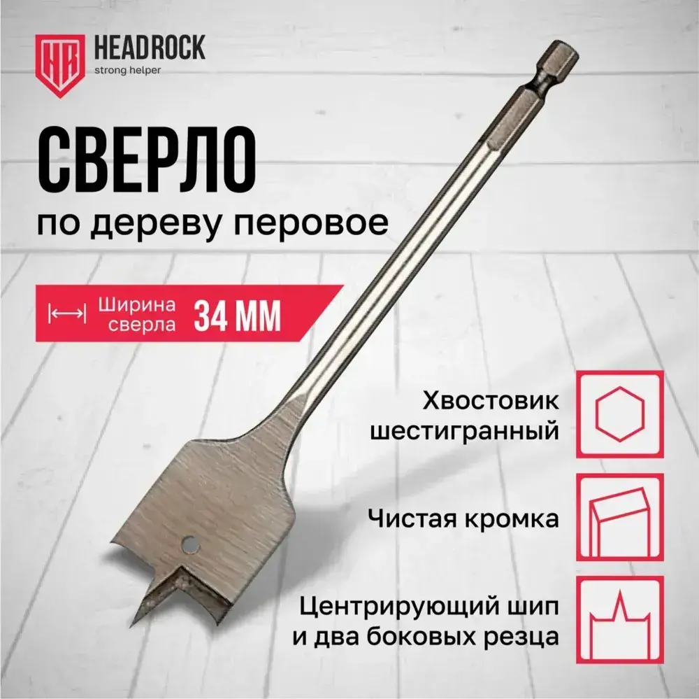 Сверло по дереву 34 х 152 мм перовое (перьевое), шестигранный хвостовик HEADROCK