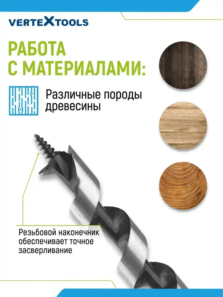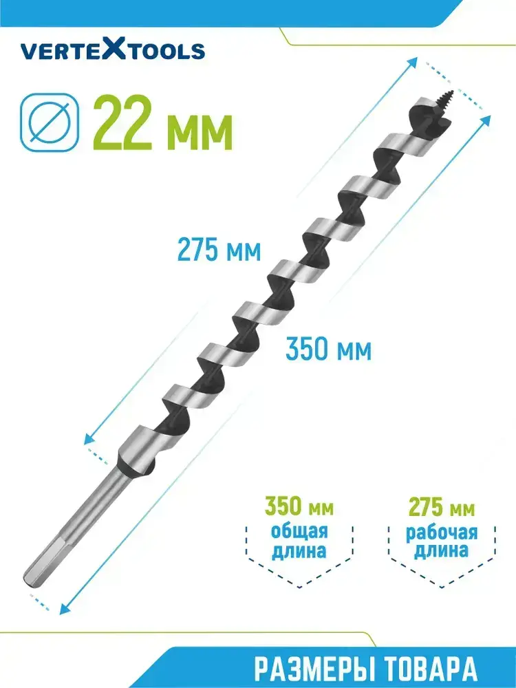 Сверло по дереву спиральное 22х350 мм Vertextools