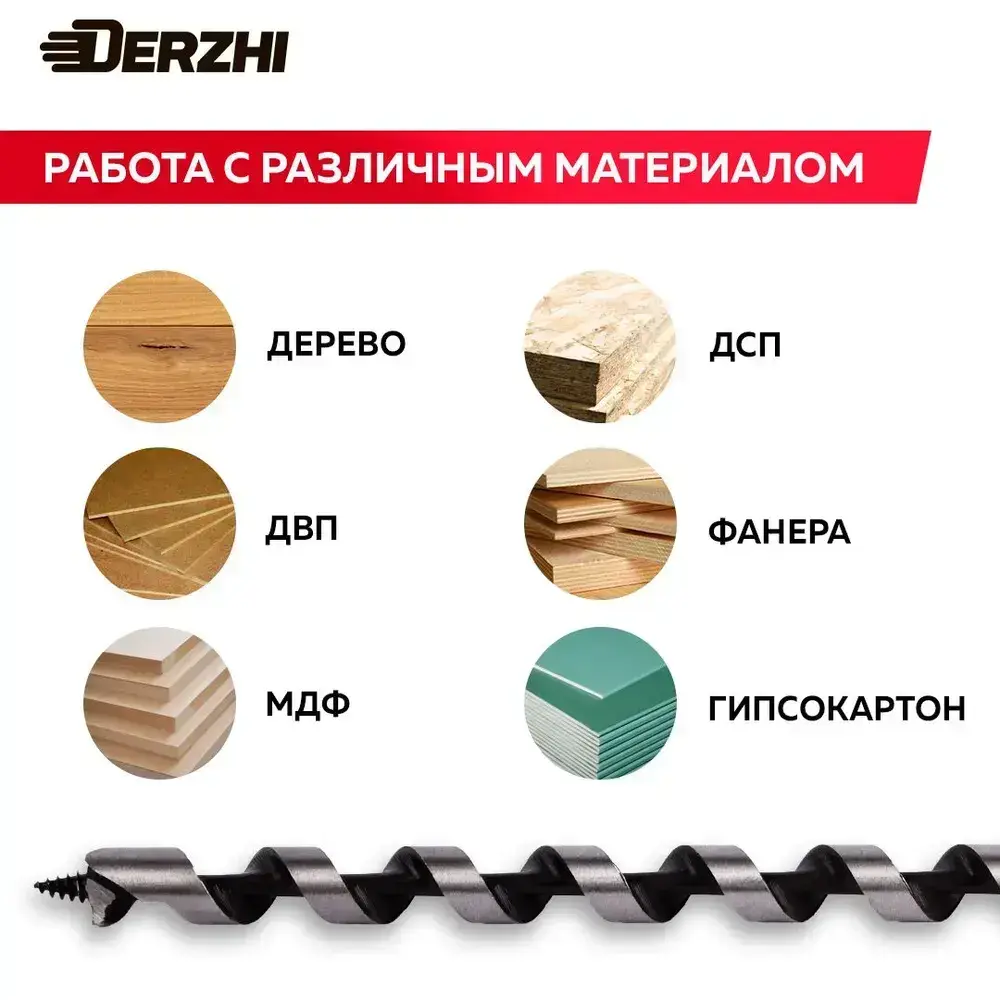 Сверло по дереву винтовое с шестигранным хвостовиком в тубе ,10х230 мм DERZHI