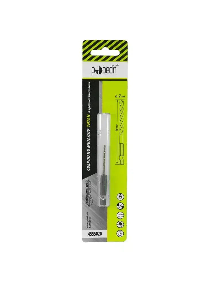 Сверло по металлу 2 х 70 мм нитрид титан Pobedit