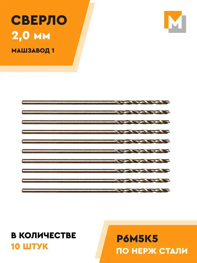 Сверло по металлу 2.0 мм - 10 шт. Р6М5К5 кобальтовое МАШЗАВОД 1