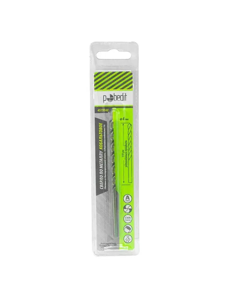 Сверло по металлу удлинённое 4 х 119 мм Р6М5К5 Pobedit