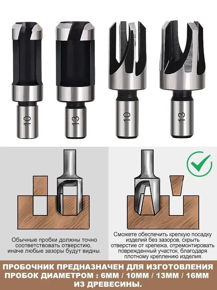 Сверло пробочное XCAN набор 8шт. ( 6, 10, 13, 16 мм) для изготовления пробок и заглушек
