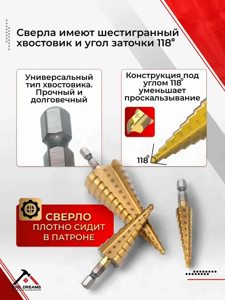 Сверло ступенчатое по металлу 3 шт, для отверстий от 4-32 мм