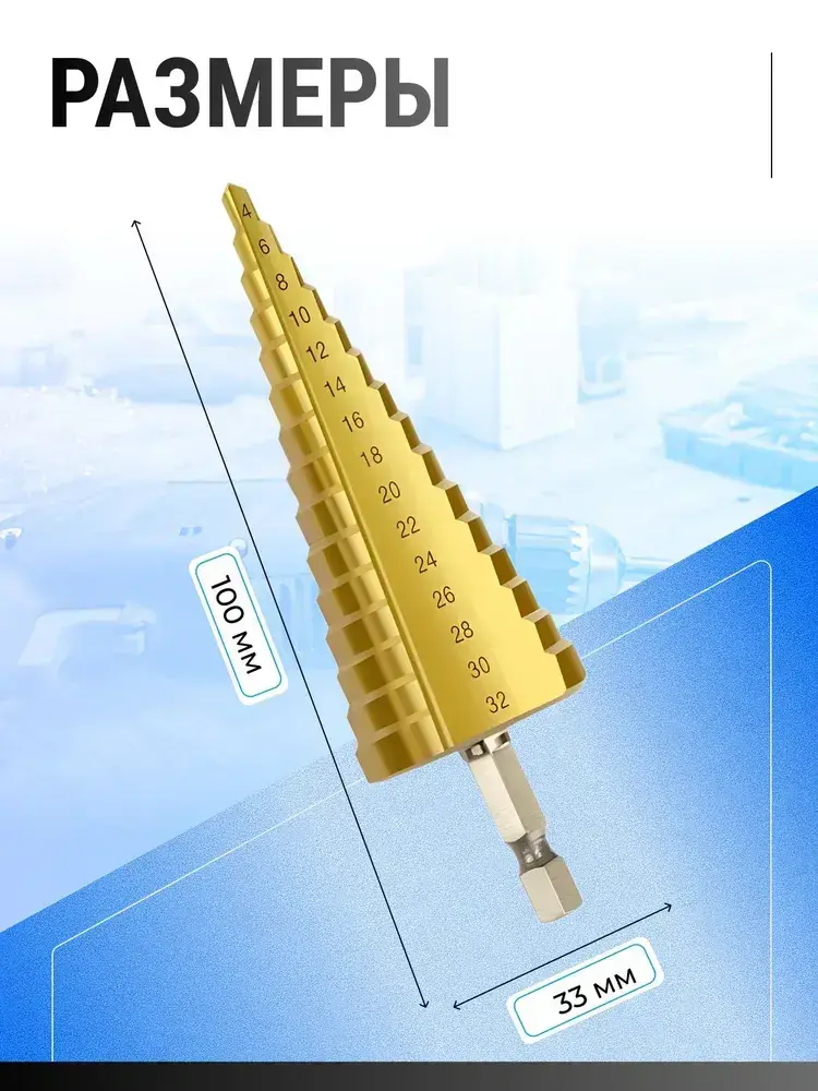 Сверло ступенчатое по металлу, сверло по металлу, для отверстий 4-32 мм, с титановым покрытием