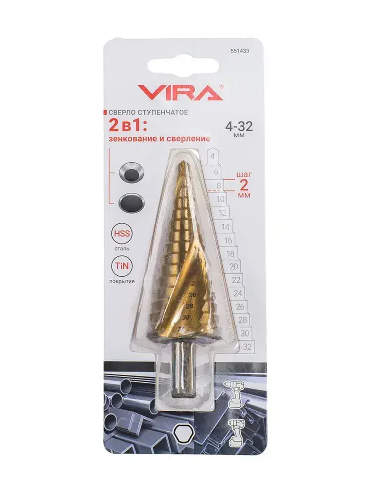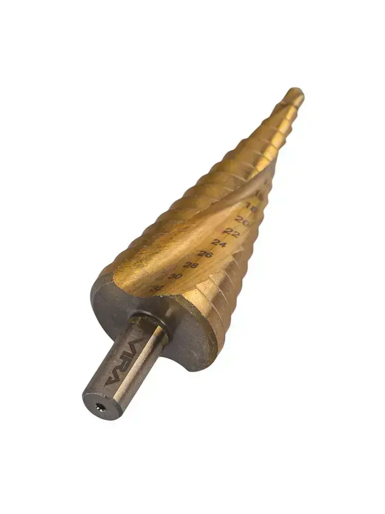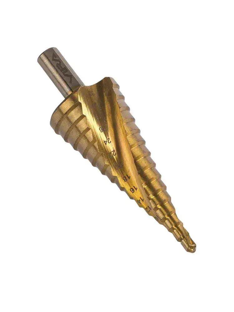 Сверло ступенчатое спиральное по металлу TiN с трёхгранным хвостовиком 4-32 мм VIRA