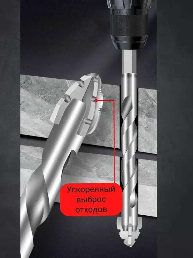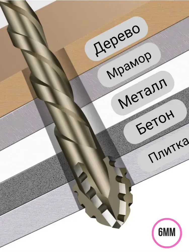 Сверло высокой твердости универсальное 6мм 4-х лопастное мрамор бетон металл стекло дерево