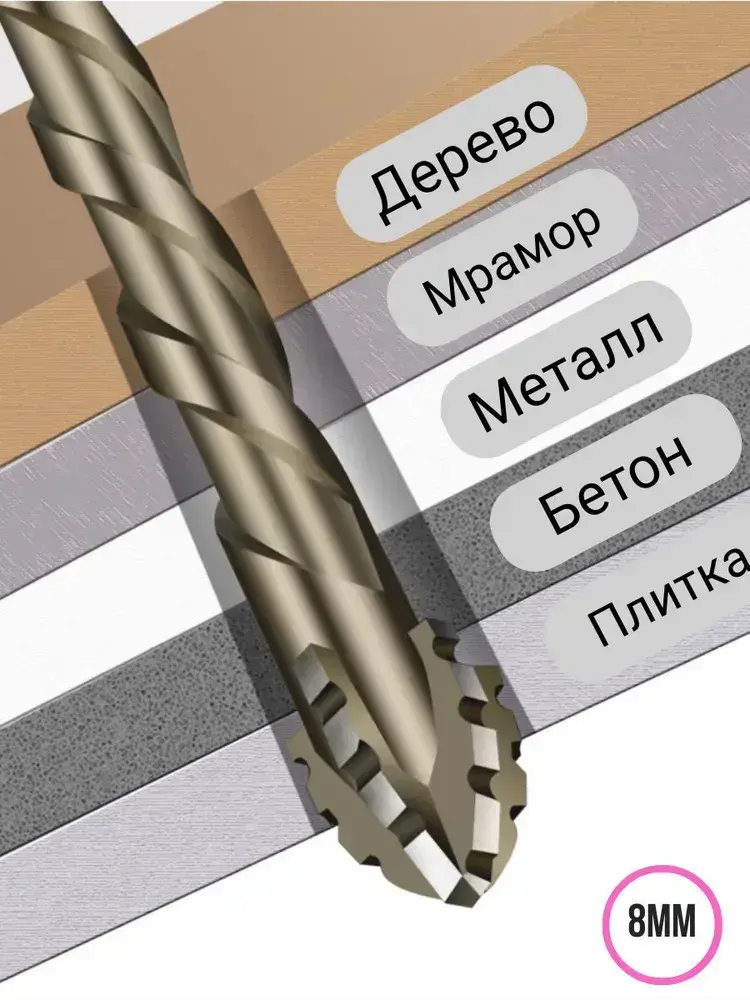 Сверло высокой твердости универсальное 8мм 4-х лопастное мрамор бетон металл стекло дерево