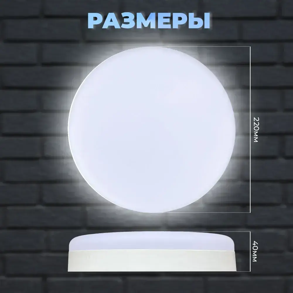 Светильник герметичный настенно-потолочный. Сверхяркий КРУГ 30Вт, со степенью защиты IP65. Размер 220х50. Холодный белый свет 6500К