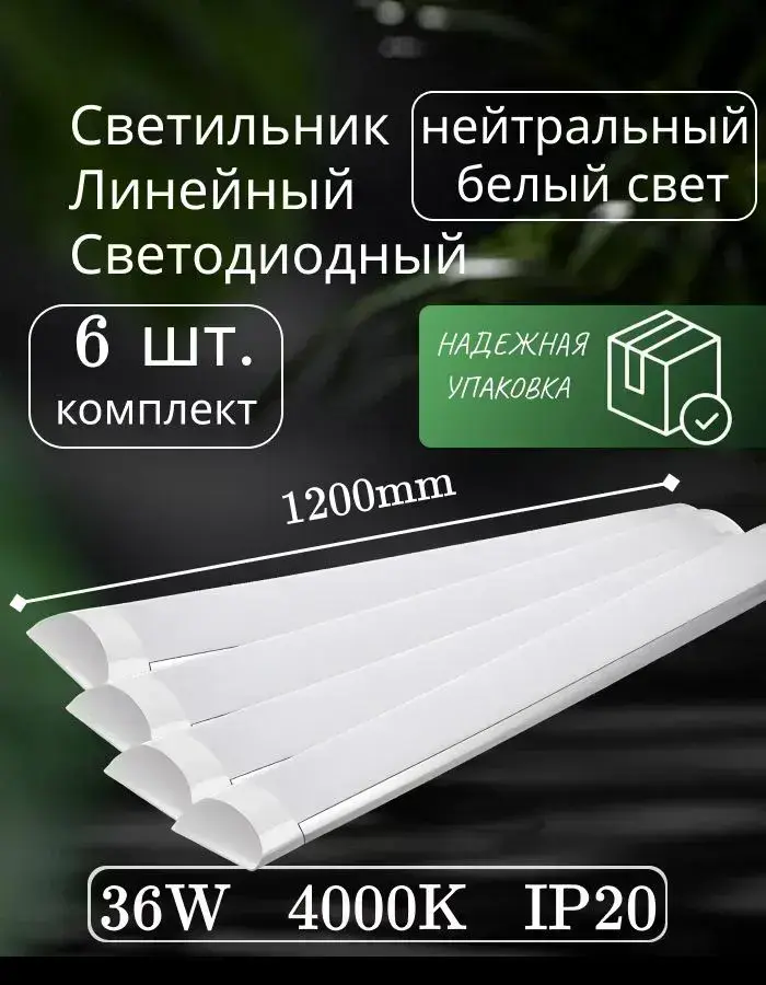 Светильник линейный светодиодный настенный потолочный 120 см 36 вт 4000К 6 шт