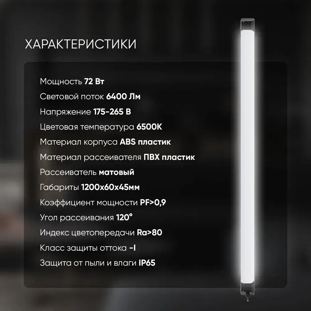 Светильник линейный уличный 72Вт IP65 6500К холодный белый свет в стильном черном корпусе. Размер 1200х60х45мм