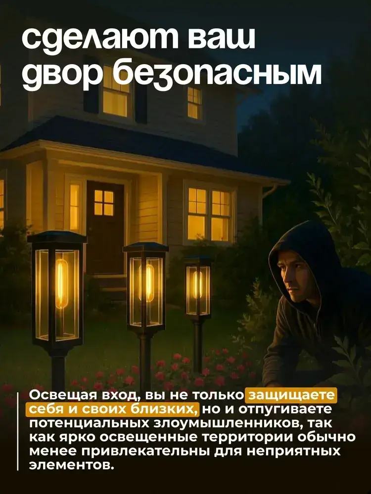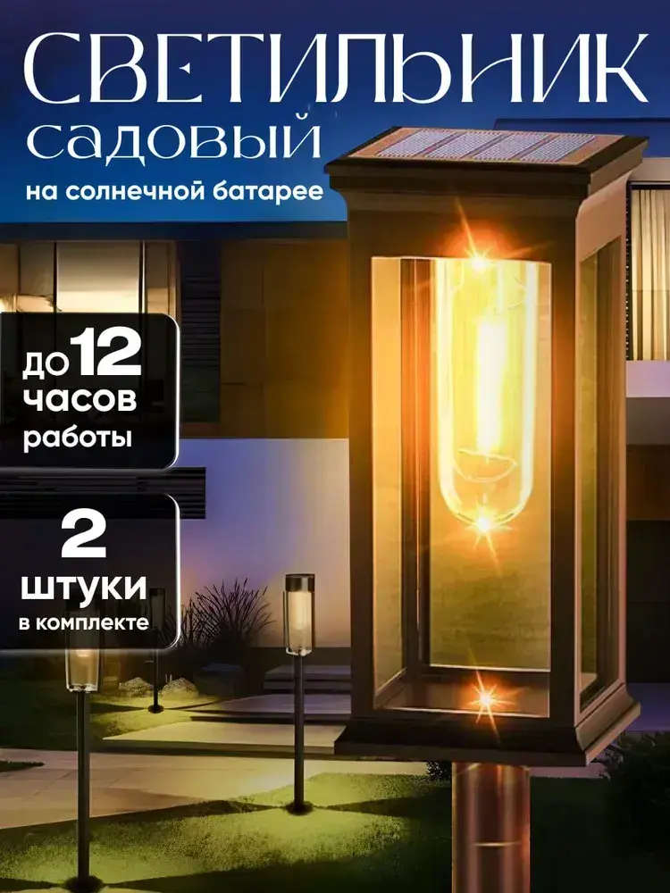 Светильник на солнечной батарее уличный, ландшафтный, беспроводной, фонарь 2 шт