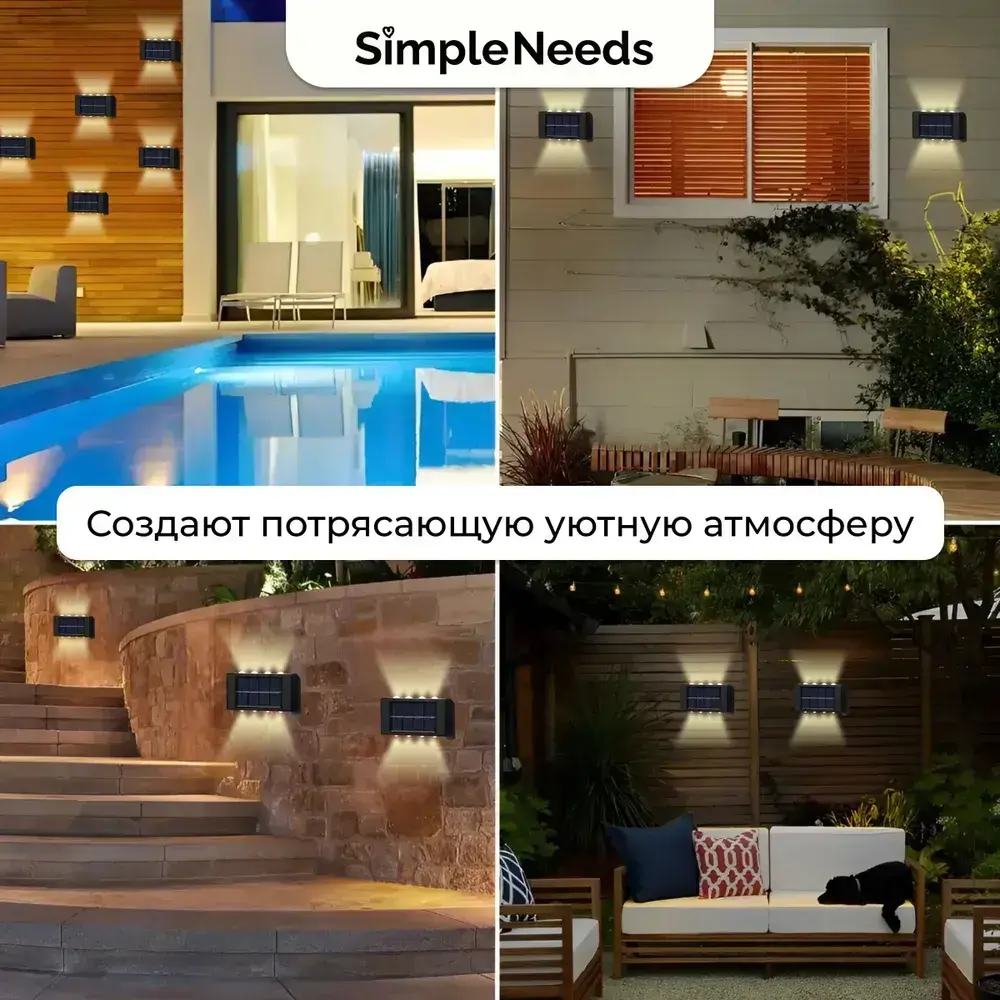 Светильник на солнечной батарее уличный, настенный 8 ламп, в наборе 2 шт