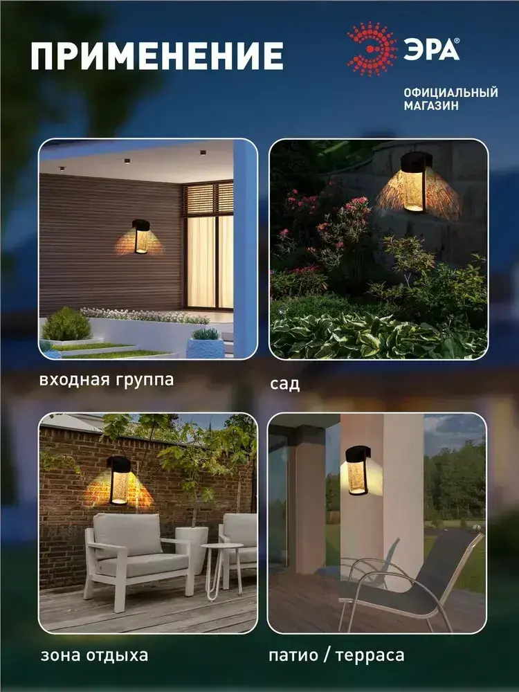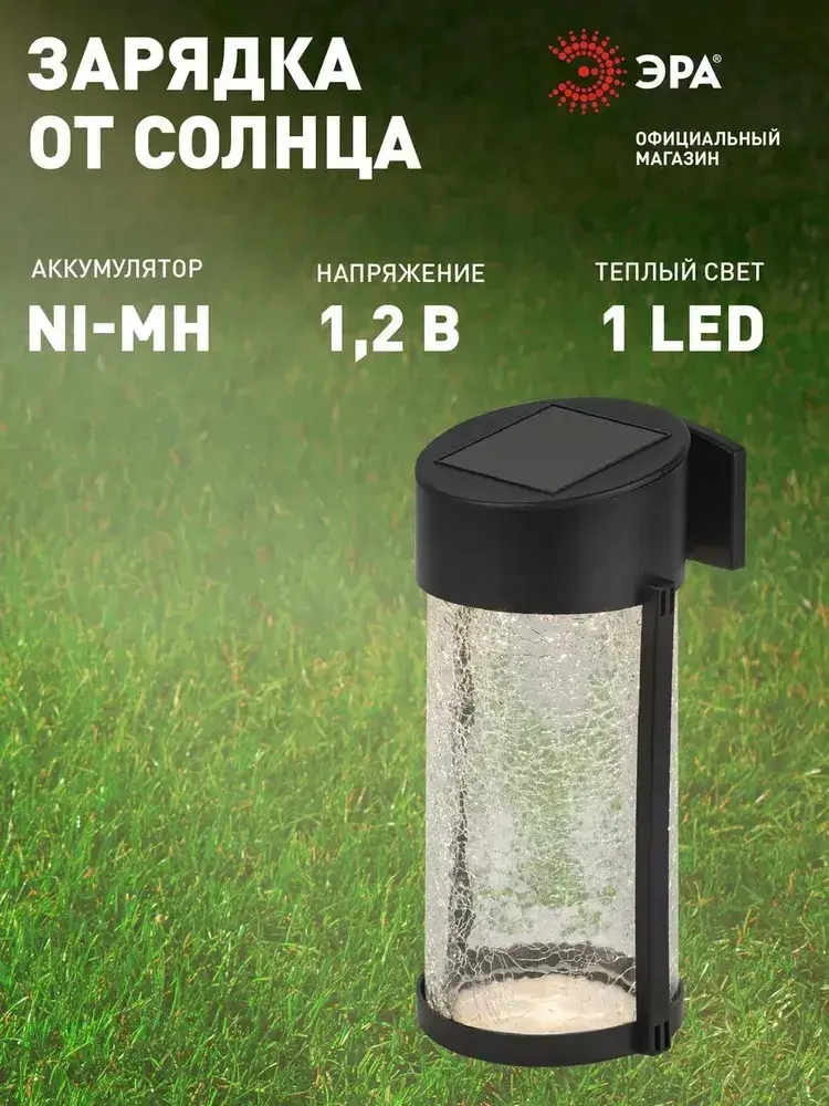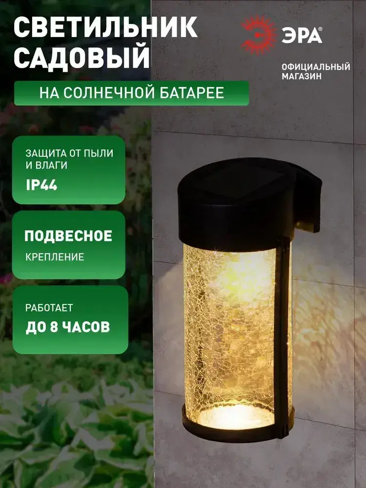 Светильник на солнечной батарее уличный настенный ЭРА ERAFS012-15 Кракле светодиодный 10x10x18.5 см 1 LED