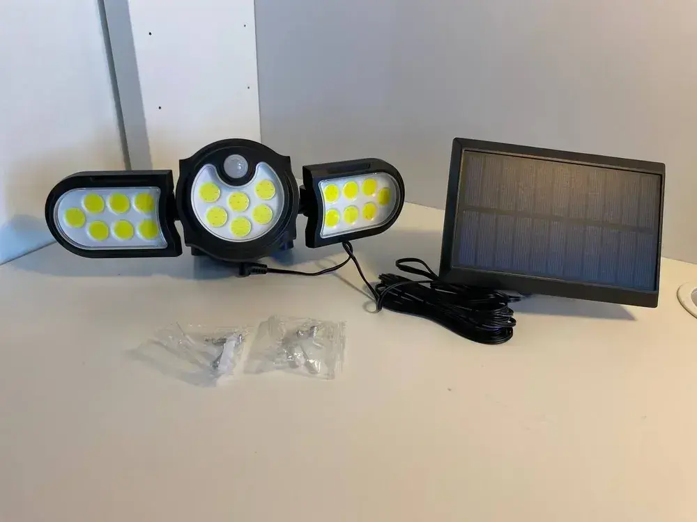 Светильник на солнечной батарее уличный, с датчиком движения. Прожектор светодиодный с выносной солнечной панелью.