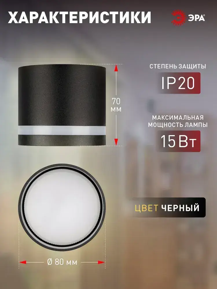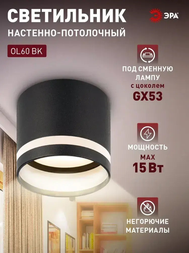 Светильник настенно-потолочный спот ЭРА TAURUS OL60 BK под лампу GX53 черный IP20