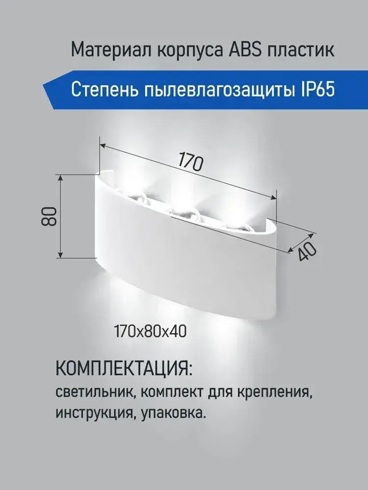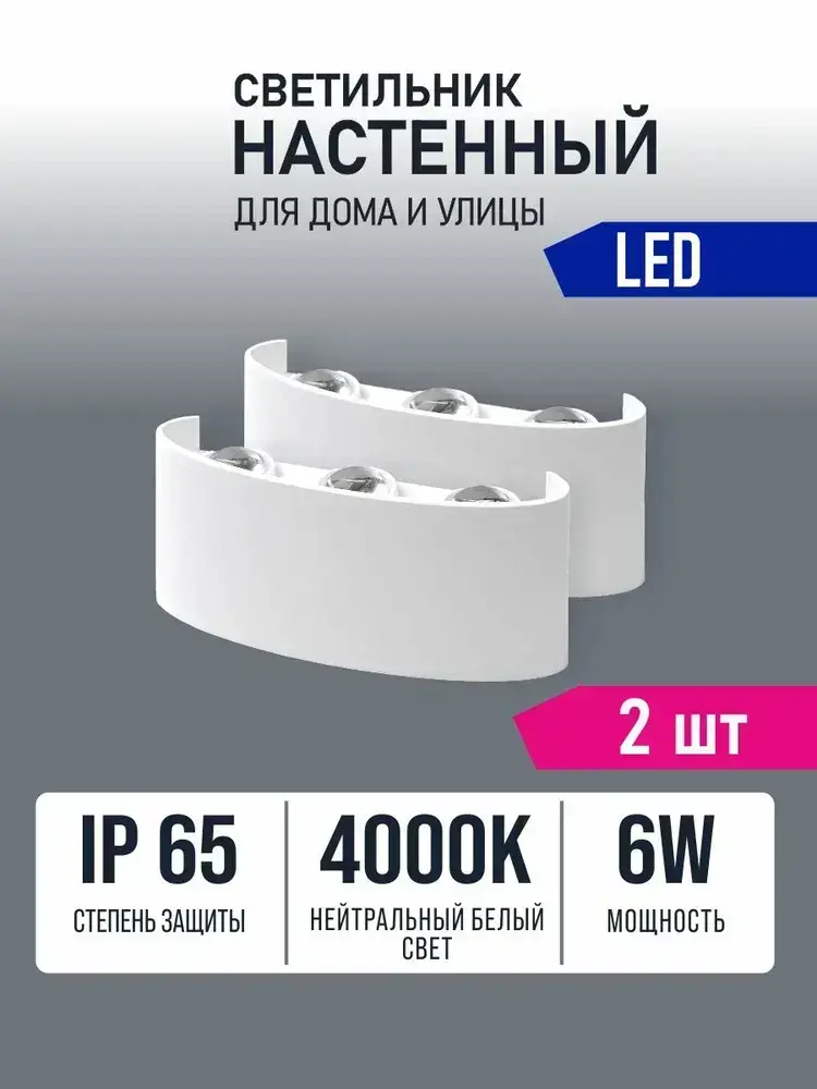 Светильник настенный светодиодный белый 6Вт 4000К Alfaled бра настенные (2 шт)