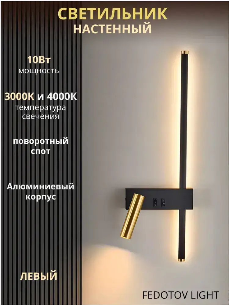 Светильник настенный светодиодный линейный, 4000К, 10Вт, 51 см, левый