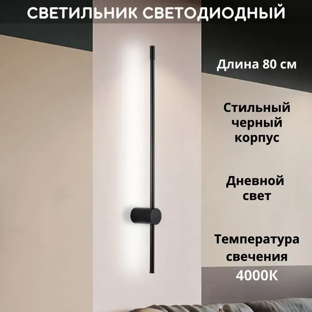 Светильник настенный светодиодный линейный 4000К, 80 см, черный